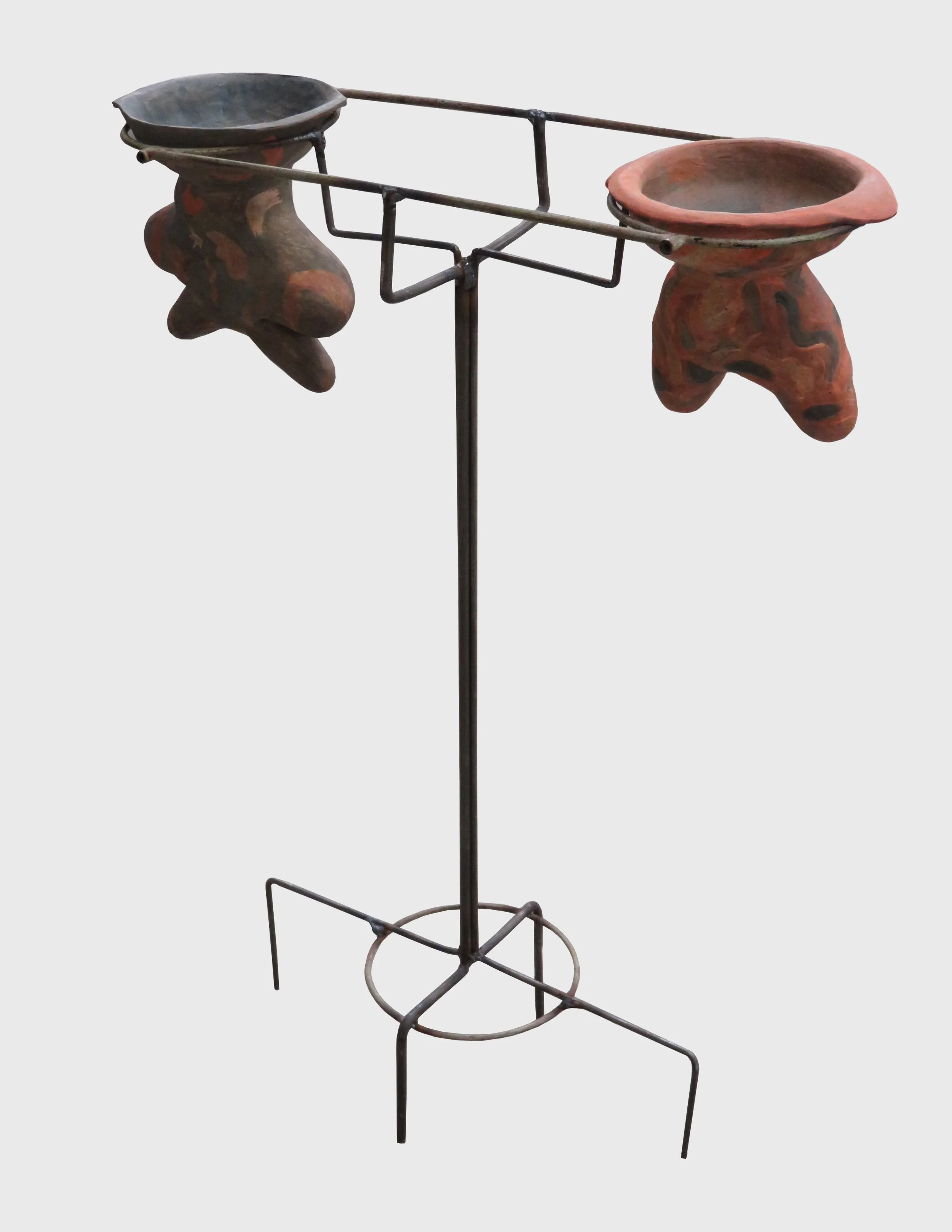 Welded metal stand with ceramic vessels